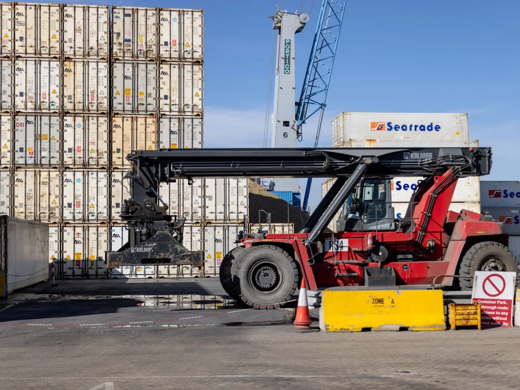 We have capacity for 1200 containers, safely managed and positioned by our Kalmar reach stackers.